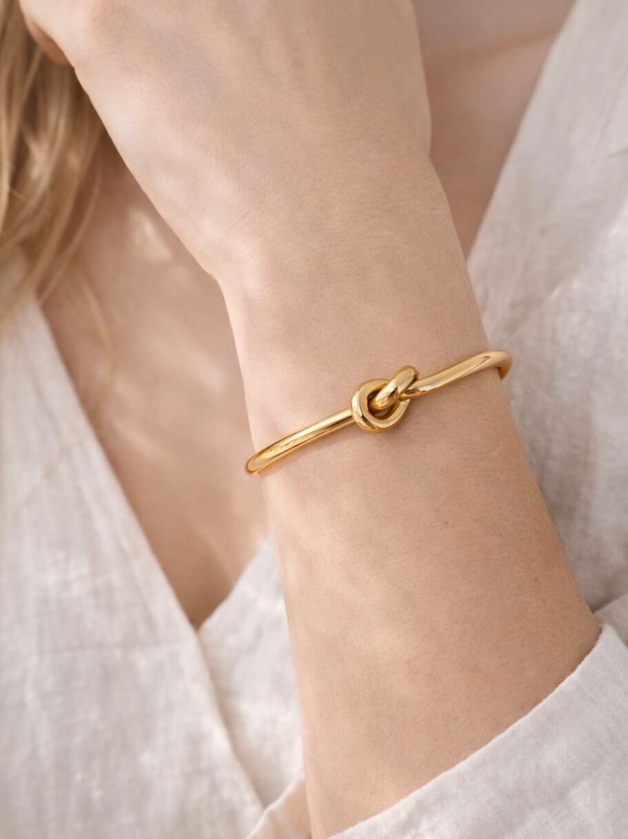ゴールドの艶が光をやさしく反射し、肌を明るく見せてくれます。