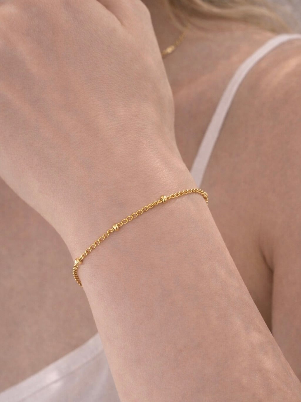 華奢なチェーンに小さなビーズをあしらったブレスレット⭐︎