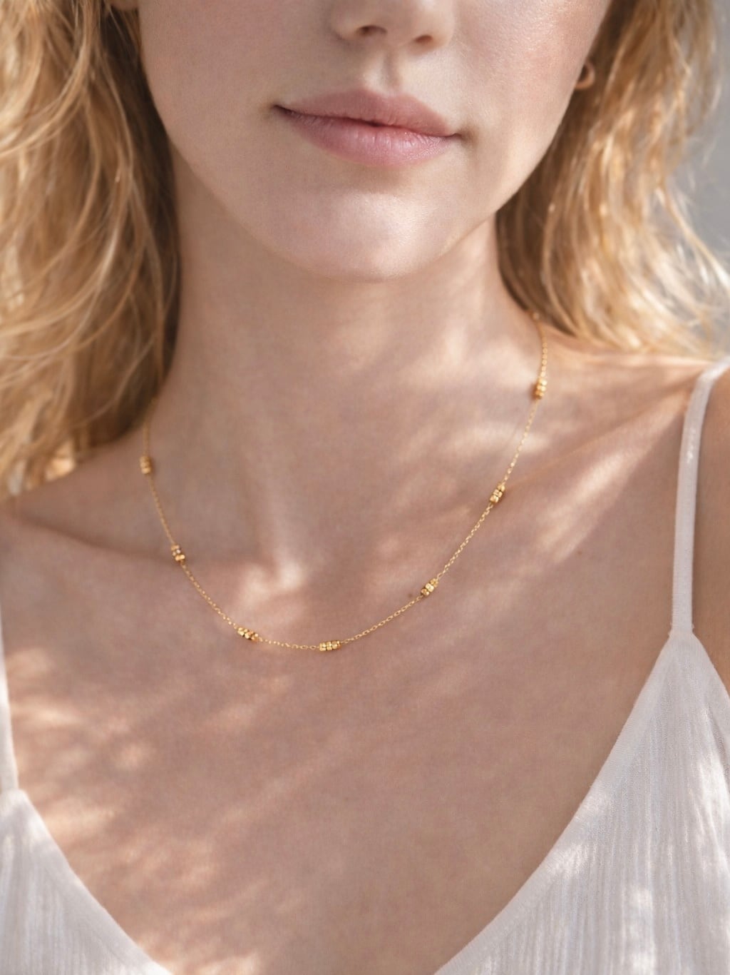 小粒のゴールドビーズが並ぶ、やさしく繊細な印象のネックレス⭐︎