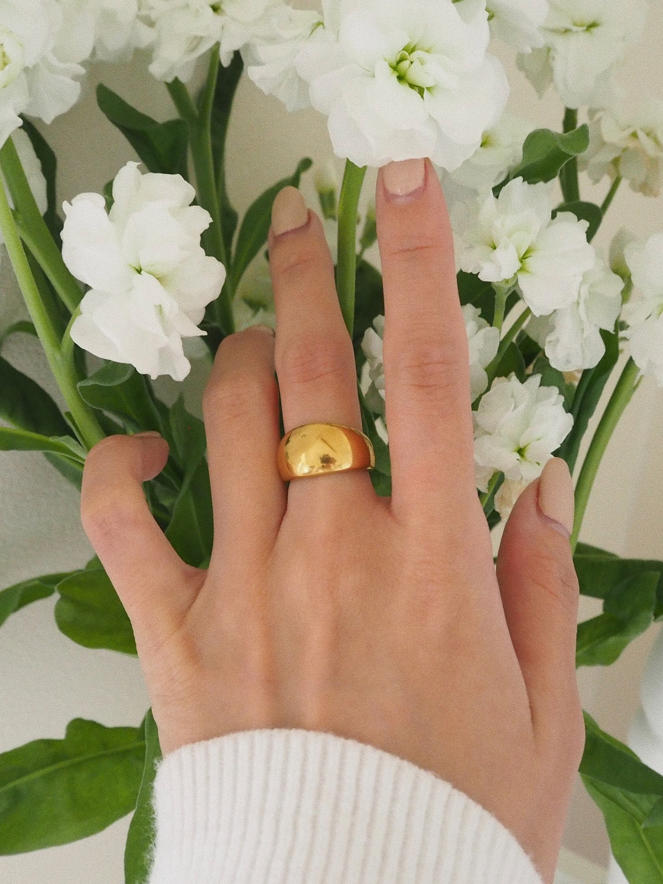 艶やかなゴールドの光沢が指先に映える、ボリュームデザインリング⭐︎