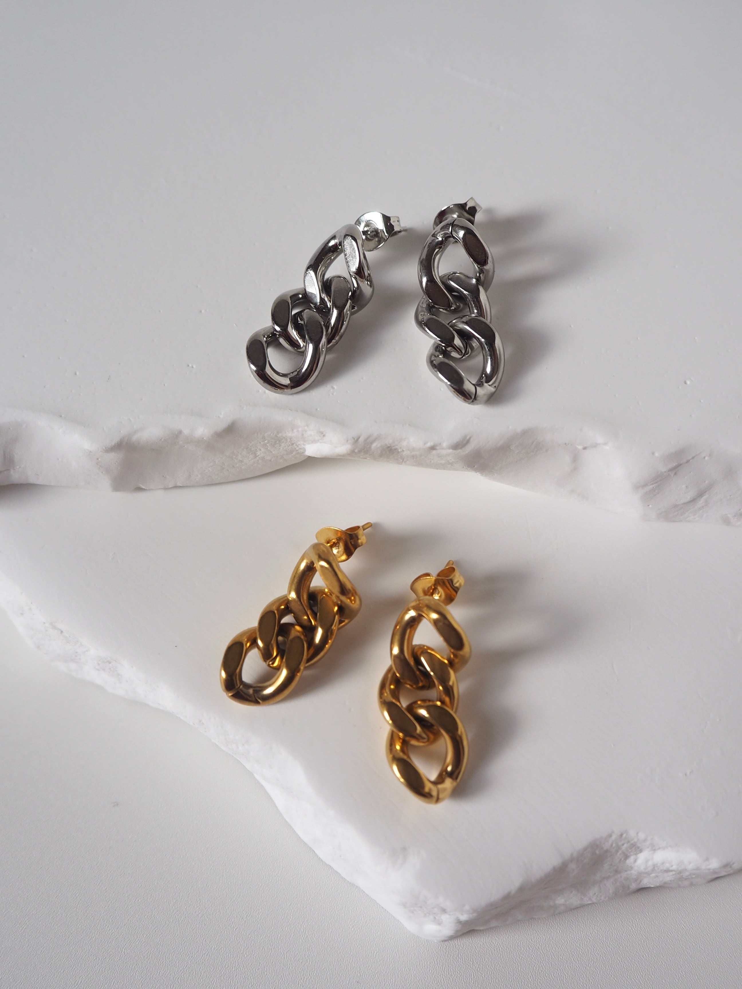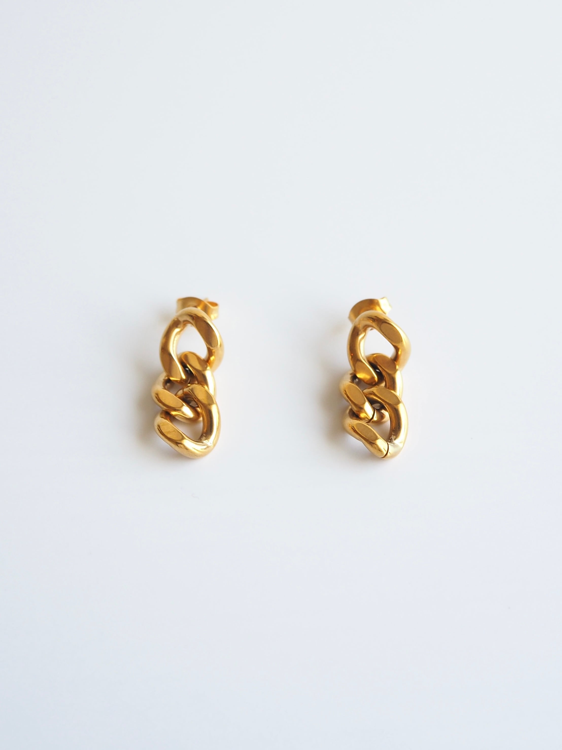 緩やかにツイストしたチェーンデザインが、光を柔らかく反射するゴールドピアス⭐︎